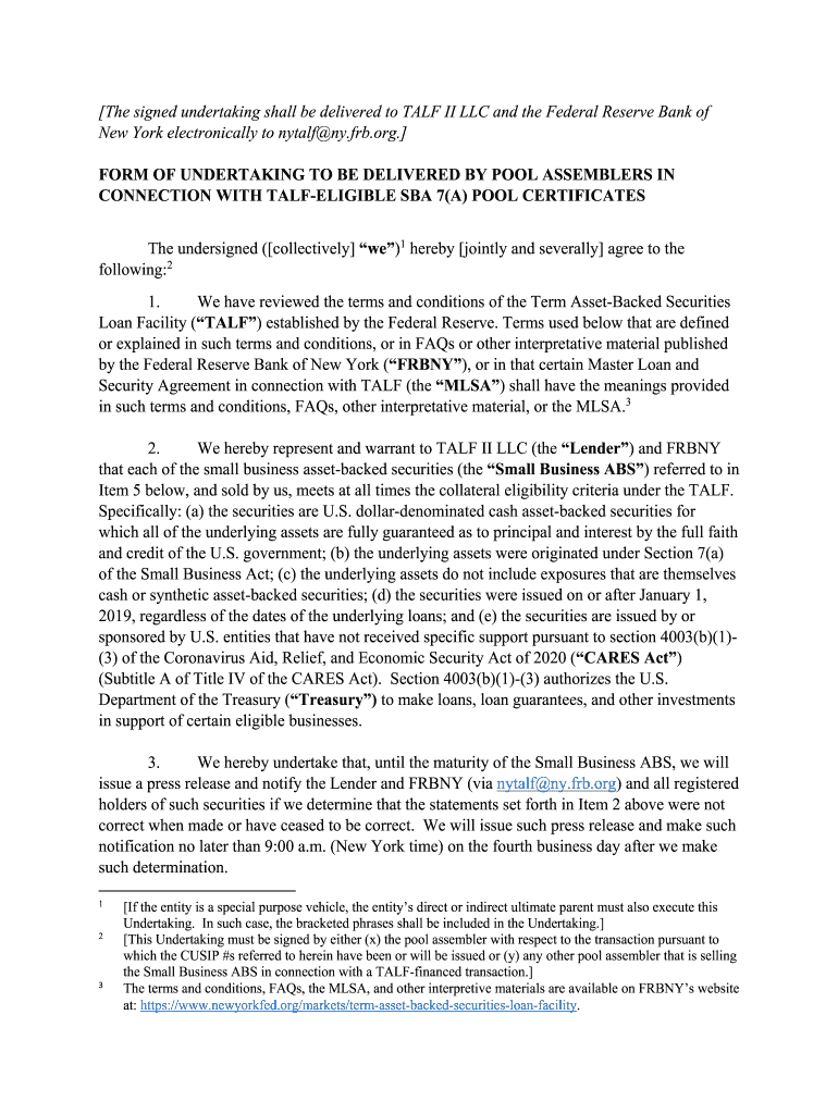 Master loan and security agreement (mlsa) the mlsa is the governing instrument for all talf loans. This guide discusses the most important features of the 2020. Each borrower of a talf loan will be required to certify, among other things, that it is unable to secure “adequate credit accommodations” from other banking institutions.